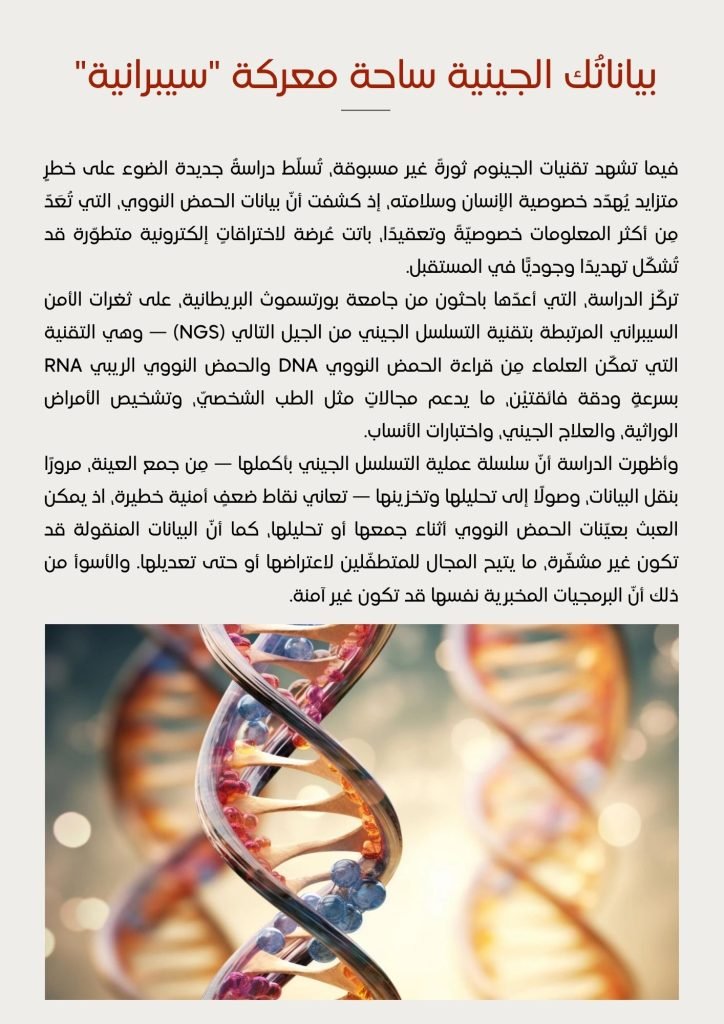 بياناتُك الجينية ساحة معركة “سيبرانية”