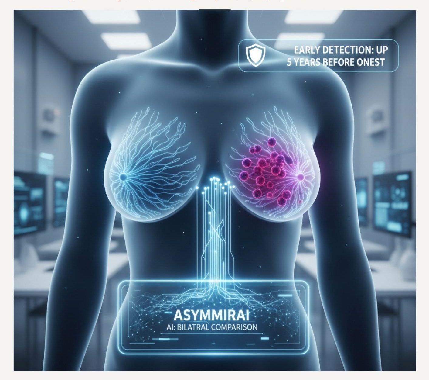 يُبسّط نظام ذكاء اصطناعي يُدعى AsymMirai، النماذج السابقة عبر مقارنة الفروقات بين الثدي الأيمن والأيسر فقط لتوقّع الخطر. وبوسع هذا النظام إنقاذ الأرواح عبر الكشف المبكر، وهو يُجنّب الفحوص غير الضرورية ويُخفّف العبء المالي على أنظمة الرعاية الصحية.