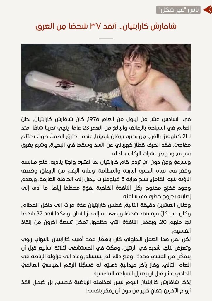 يُذكر شافارش كارابتيان اليوم ليس لعظمته الرياضية فحسب، بل كبطلٍ أنقذ أرواح الآخرين بتفانٍ كبير من دون أن يفكّر بنفسه!